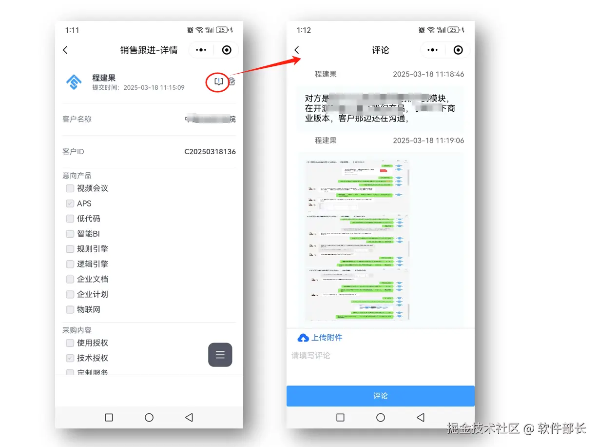 1、小程序在表单页面架构中新增**「交互式评论」**功能模块,表单本身的数据用于结构化的内容填写,在实际的业务场景中,可能还需要一些非结构的的内容填写,比如评论、进展沟通的结果等,常用于项目管理中的进展、或者内容管理中的评价说明等,所以表单中增加评论的功能。