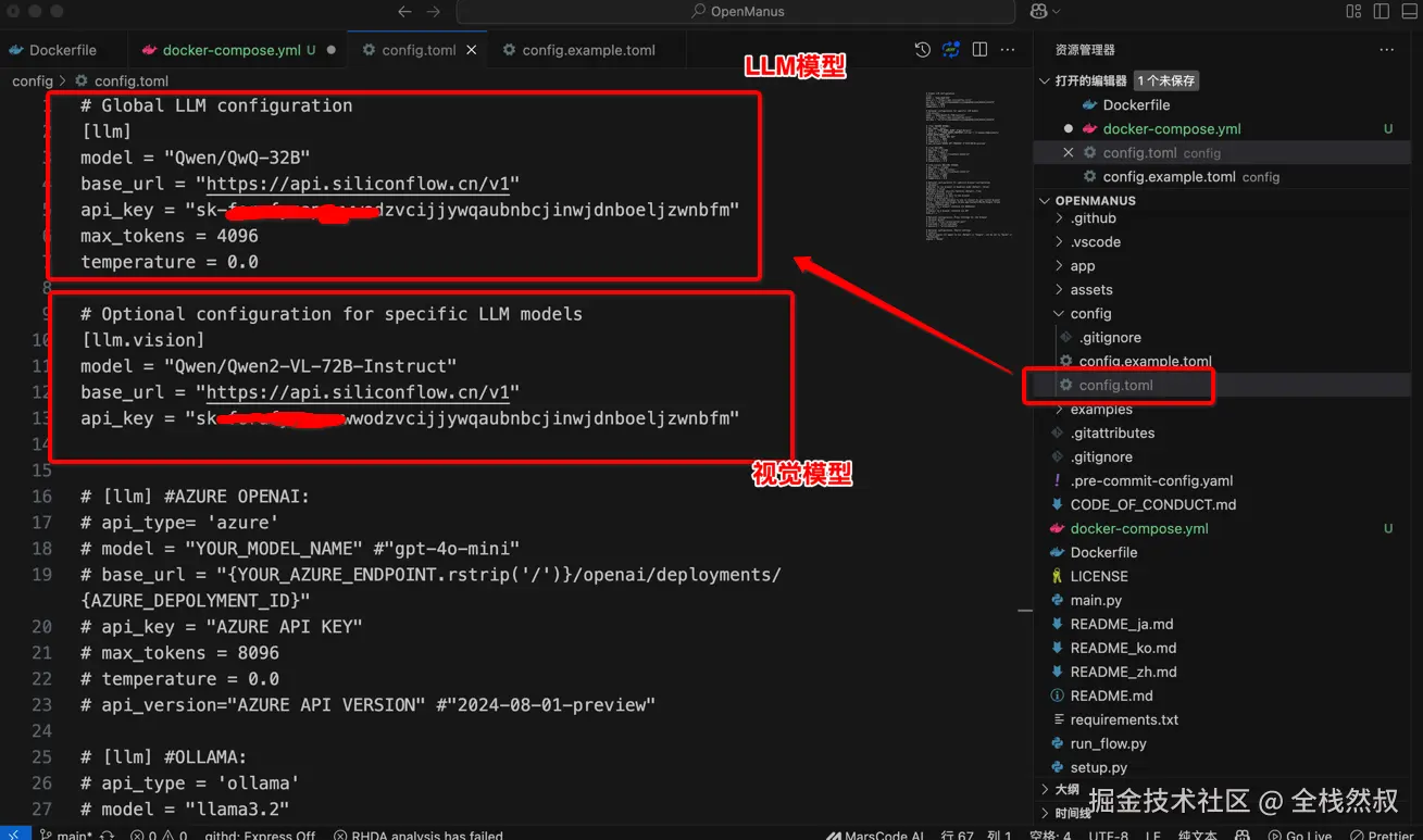 这一步主要是要配置LLM秘钥和将搜索引擎从Google换为Baidu