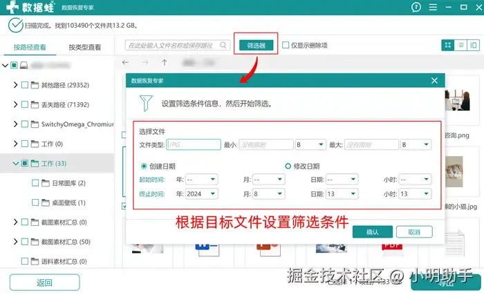 步骤2:如果扫描的文件过多,可以选择在上方使用“筛选器”工具,帮助自己排除一些不需要恢复的文件;