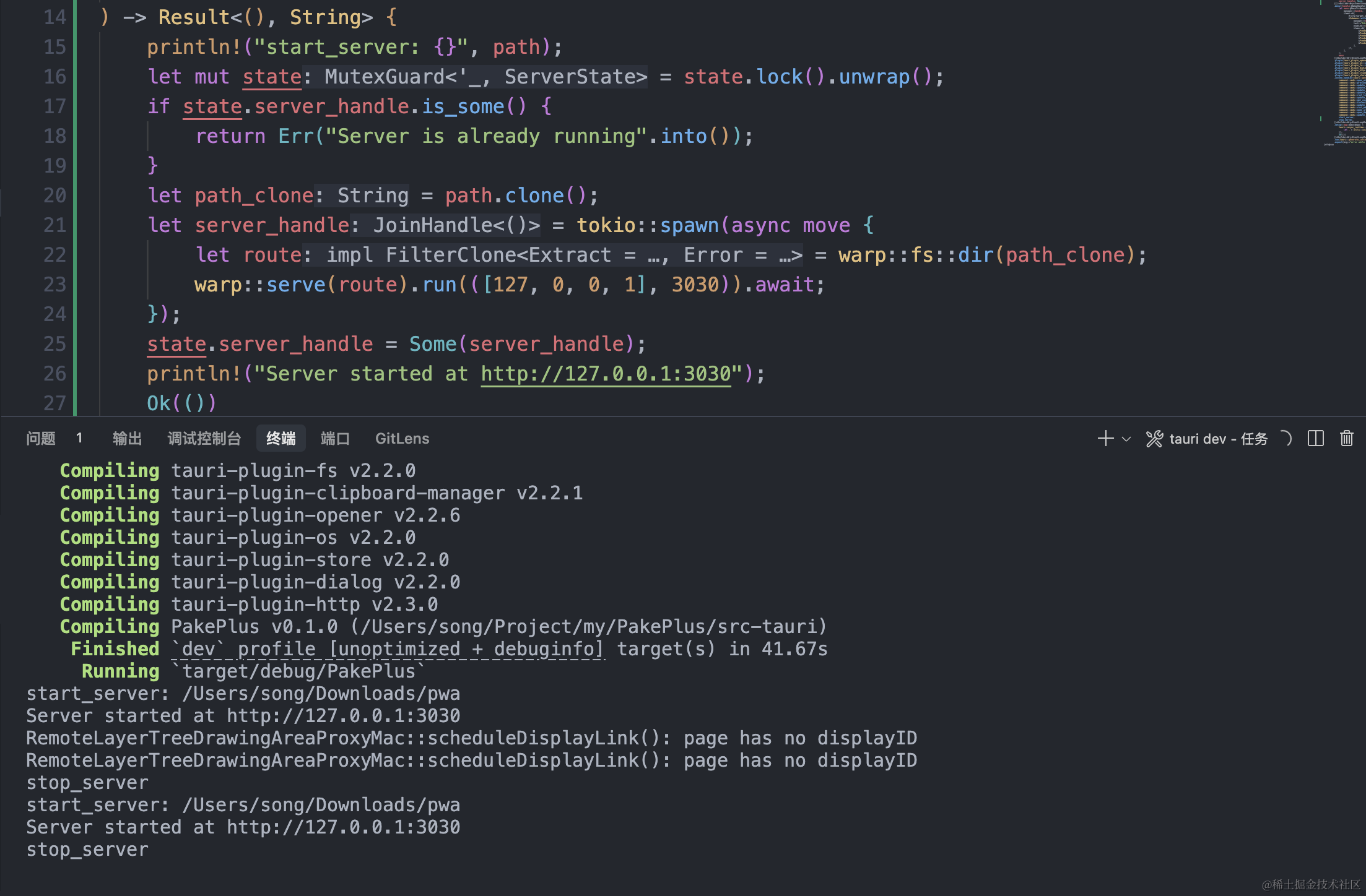 使用的是warp这个依赖库,这个依赖库是一个开源的rust server库,开源地址:github.com/seanmonstar…,使用起来也是非常的方便,只需要添加到自己本地cargo.toml依赖中,并跟上tokio这个依赖项。