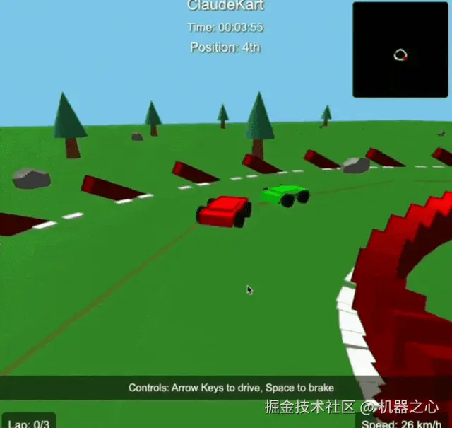 事实上,Claude 系列带给我们的惊喜远不止于此。前几天就有网友借助 Claude 成功打造出一款简单又好玩的 3D 赛车游戏。