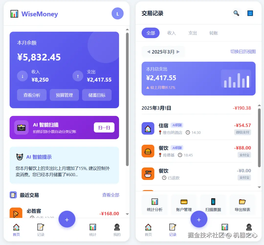Claude 3.7 Max 的另一大优势是强大的应用开发能力,这为我们提供了无限的想象空间。例如,我们可以让 Claude 3.7 Max 生成一个 AI 记账 App,用的是 Agent 模式,以下是输出结果展示。