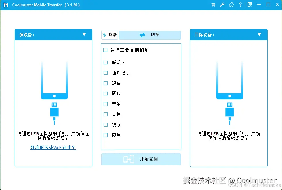 4.2 通过Coolmuster Mobile Transfer将联系人转移到新手机