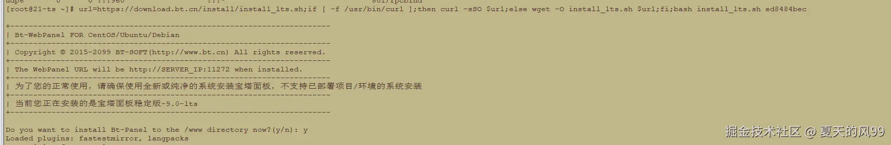 等待安装完成,提示以下信息,表示宝塔面板安装完成