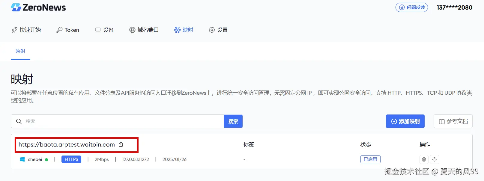 用户就可以通过互联网访问内网的宝塔面板,进行网站发布,同样通过ZeroNews将网站映射到公网。