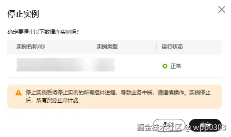 - 停止实例后,实例将无法对外提供服务,请谨慎操作。
