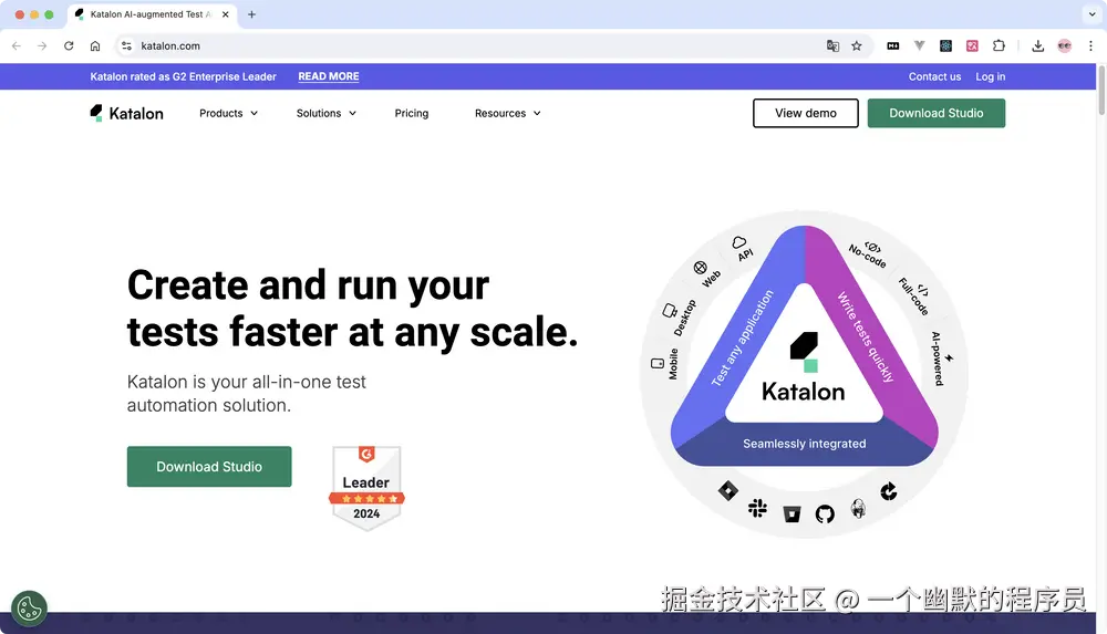 如果说API测试只是你测试需求的一部分,那Katalon Studio绝对值得一看!它不仅支持API测试,还能做Web测试和移动应用测试,是真正的全栈测试平台!