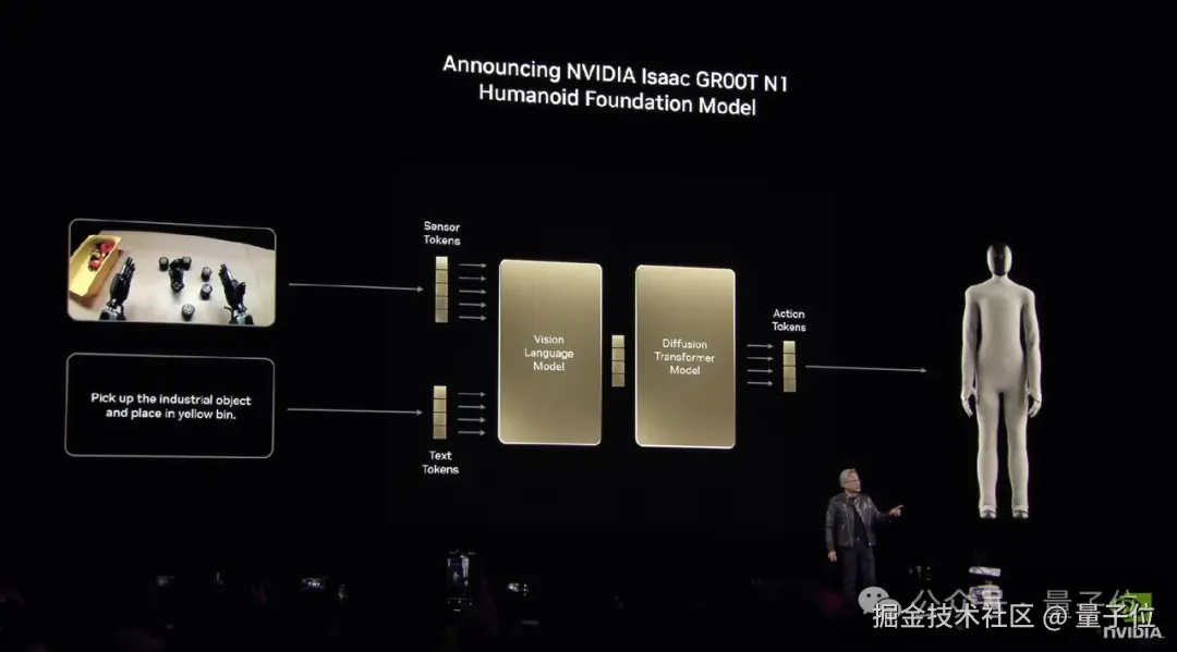 同时,英伟达还同步推出了 Isaac GR00T N1,号称全球首个开源的、完全可定制的人形机器人基础模型。