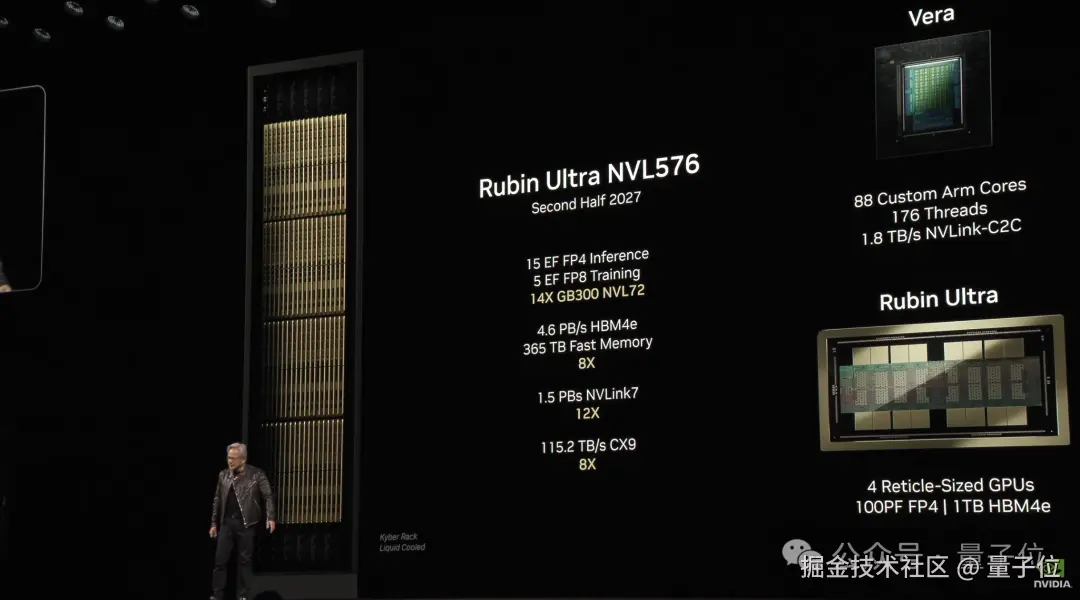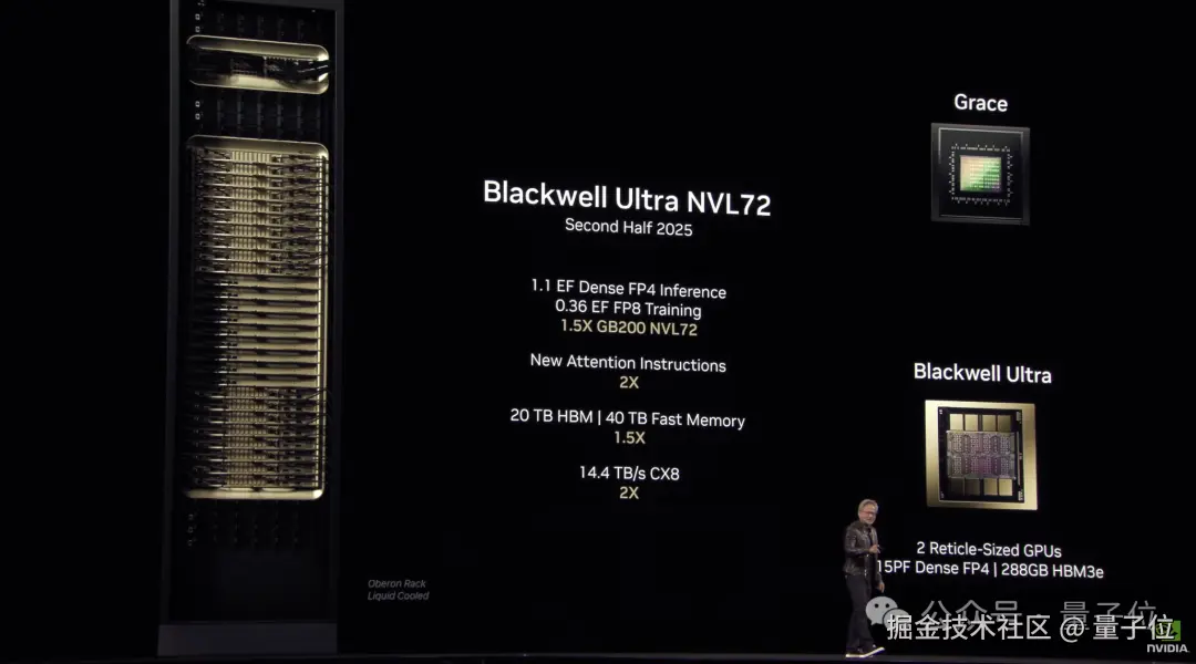 性能方面,和去年发布的 GB200 相比,推理性能是其 1.5 倍。