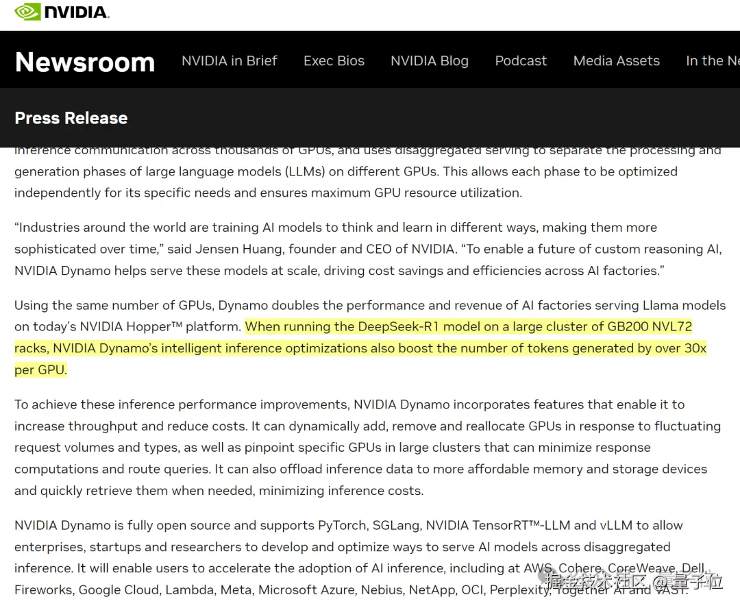 其中最重磅的,当属发布 NVIDIA Dyamo,一个用于加速 AI 模型推理的分布式推理服务库。