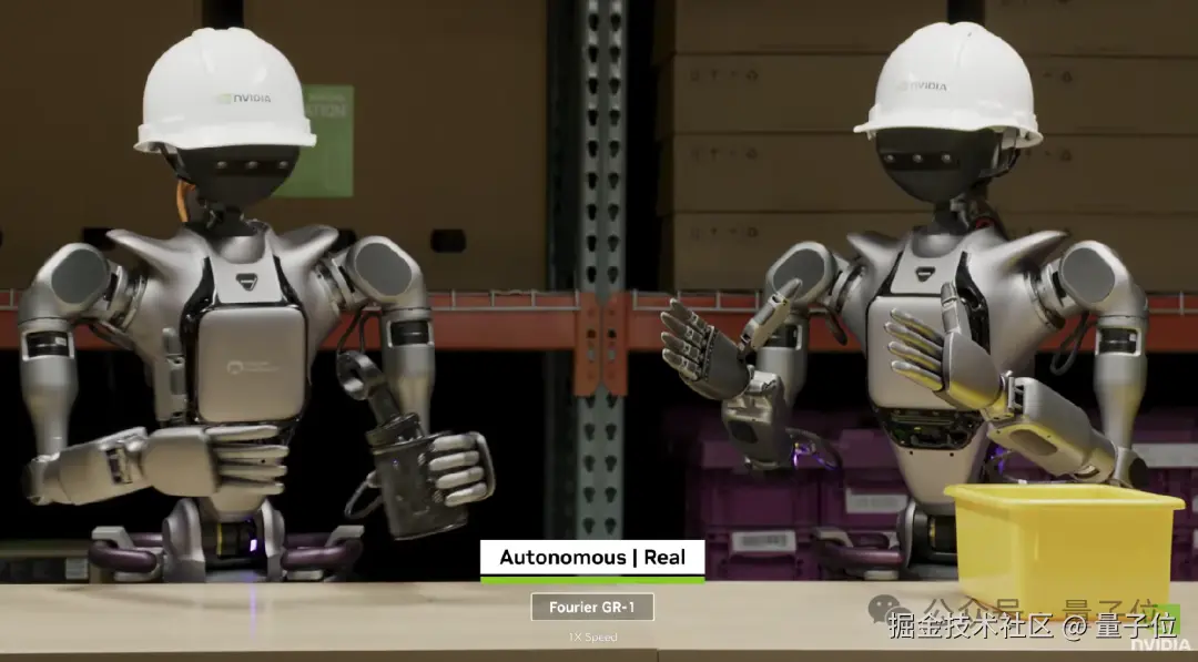 在大会演示中,GR00T N1 能够轻松泛化常见的任务,如抓取、移动物体以及在双臂之间转移物品,或执行需要长时间推理的复杂任务。