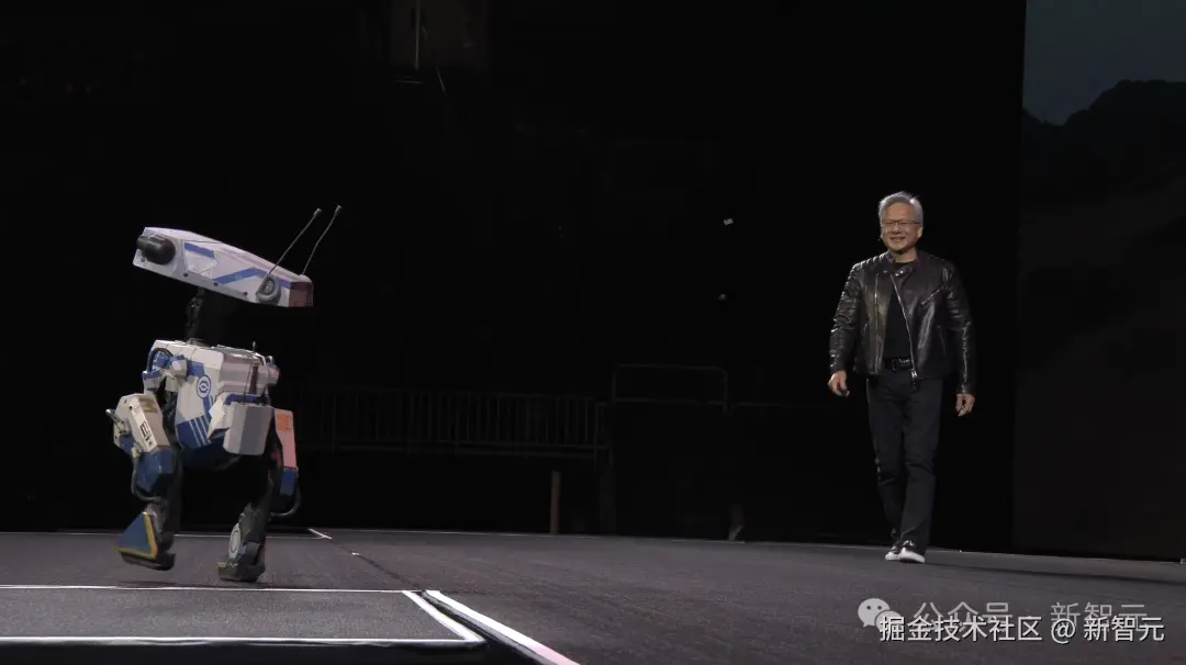 随后,以星球大战 BDX 机器人为灵感,装上 Newton 引擎的 Blue 上台和老黄来了一波有趣的互动。