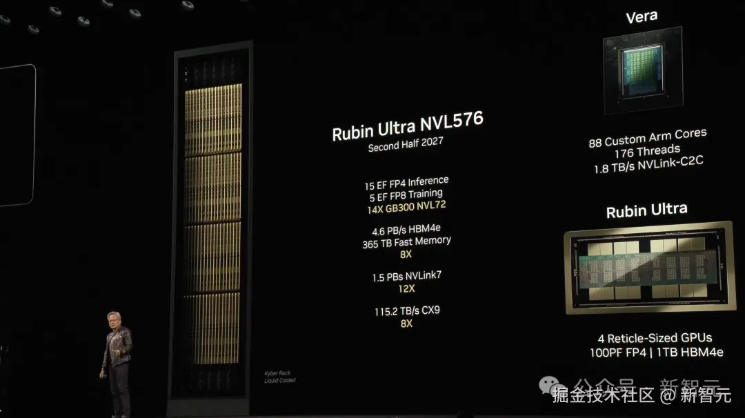 不仅有标准版 Rubin,老黄现场还推出了 Rubin Ultra 版本。