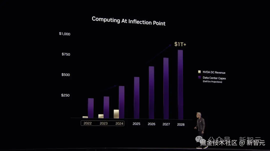老黄表示,未来数据中心建设将达到一万亿美元的规模,并且他确信,这个时间很快了!