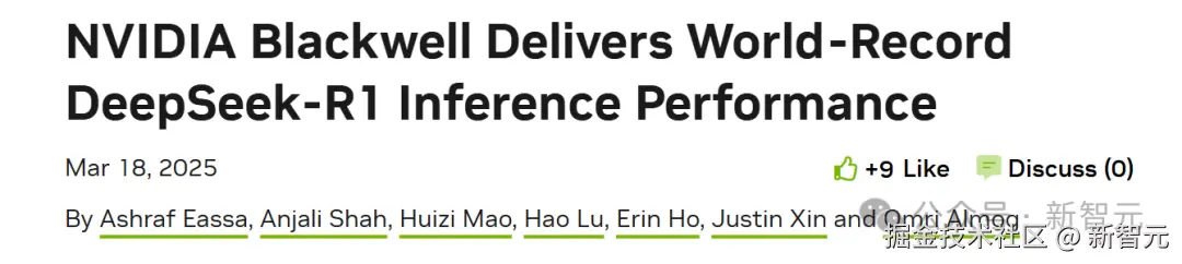 根据英伟达官方博客介绍,Blackwell 已经让 DeepSeek-R1 打破了推理性能的世界纪录。