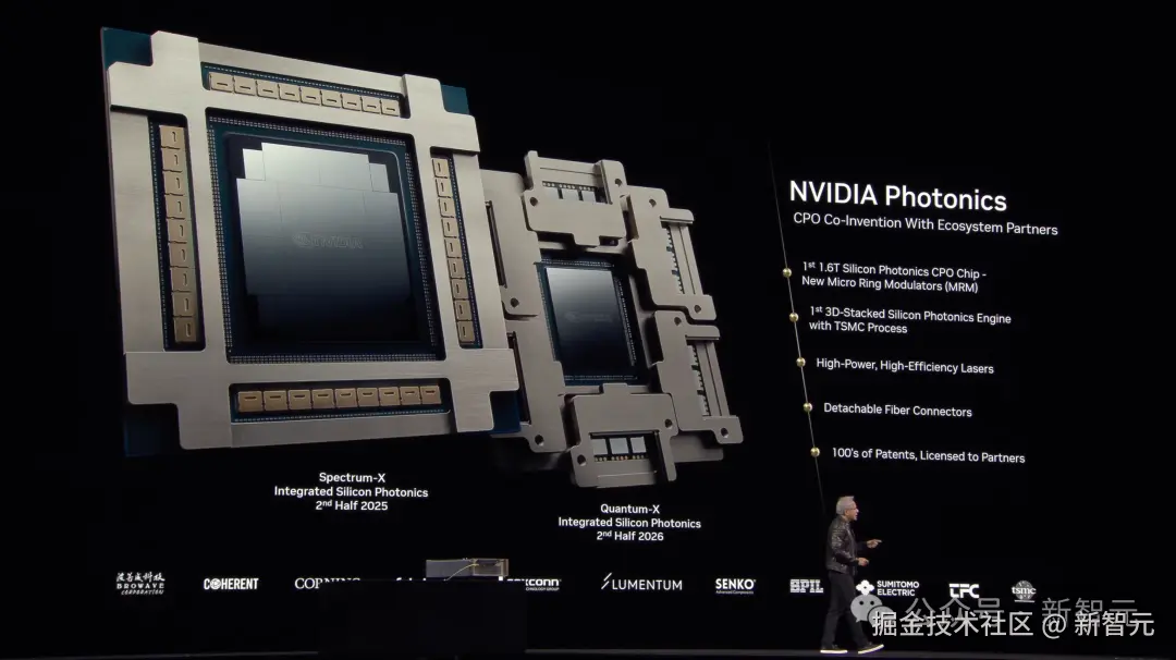 值得一提的是,老黄官宣了英伟达首个共封装硅光子系统,也是世界上第一个每秒 1.6T 的 CPO。