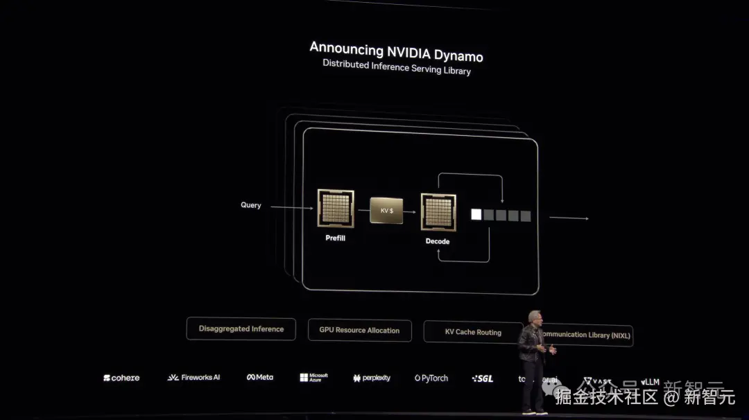 NVIDIA Dynamo 是 NVIDIA Triton Inference Server 的下一代产品,它能协调并加速数千个 GPU 之间的推理通信,并使用分布式服务把 LLM 的处理和生成阶段分配到不同的 GPU 上。