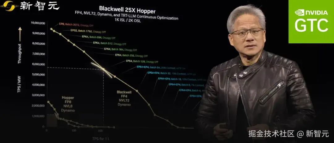 - Blackwell NVL72 结合 Dynamo 推理性能提升了 40 倍,相当于一座 Hopper AI 工厂的性能。