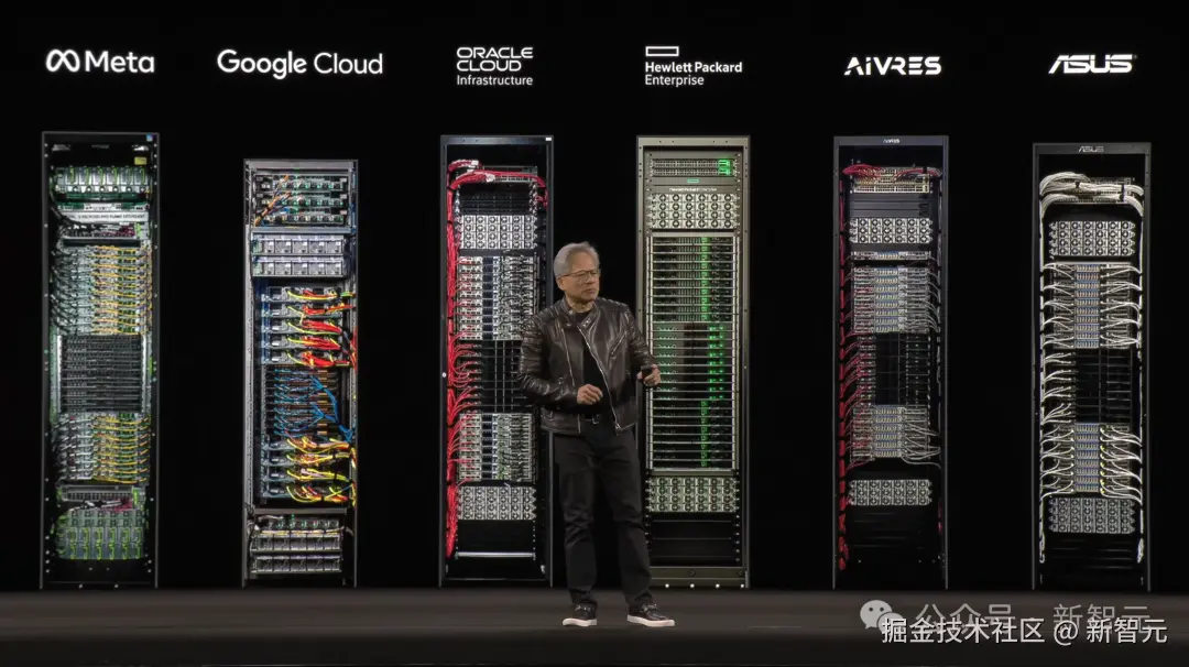 从此,集成 NVLink 转向分散式 NVLink,从空气冷却转变为液冷,从每台计算机约 6 万个组件到每个机架 60 万组件,120 千瓦功率,全液冷设置。