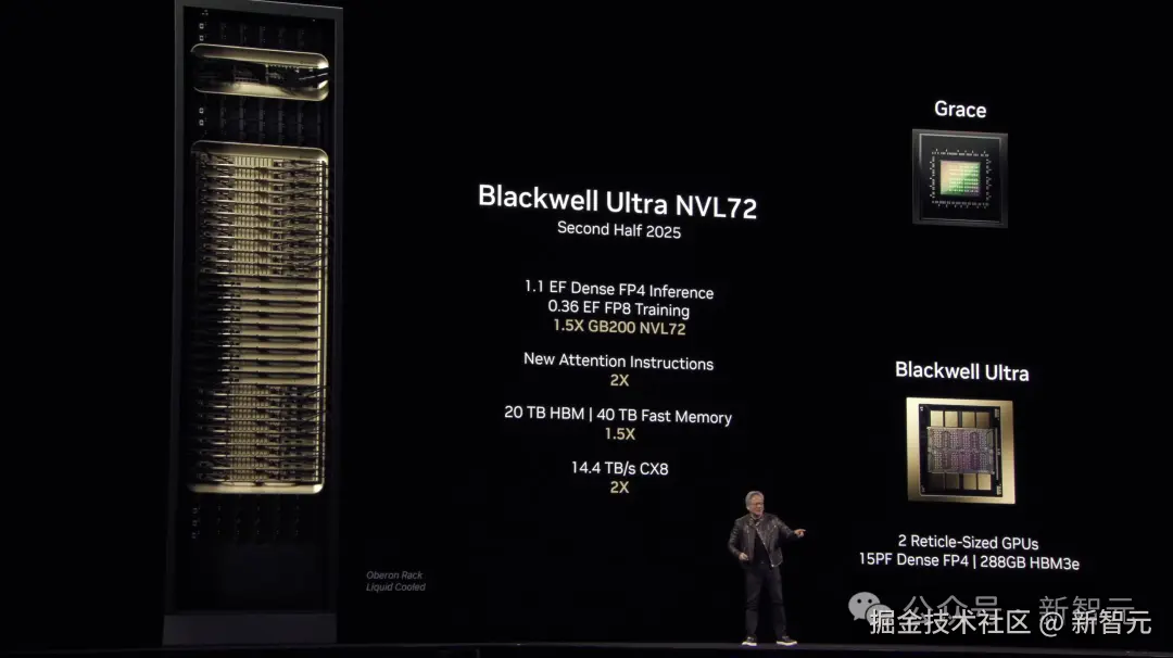 首先,是对训练和测试时推理能力进行大幅提升,并将在今年下半年问世的 Blackwell Ultra。