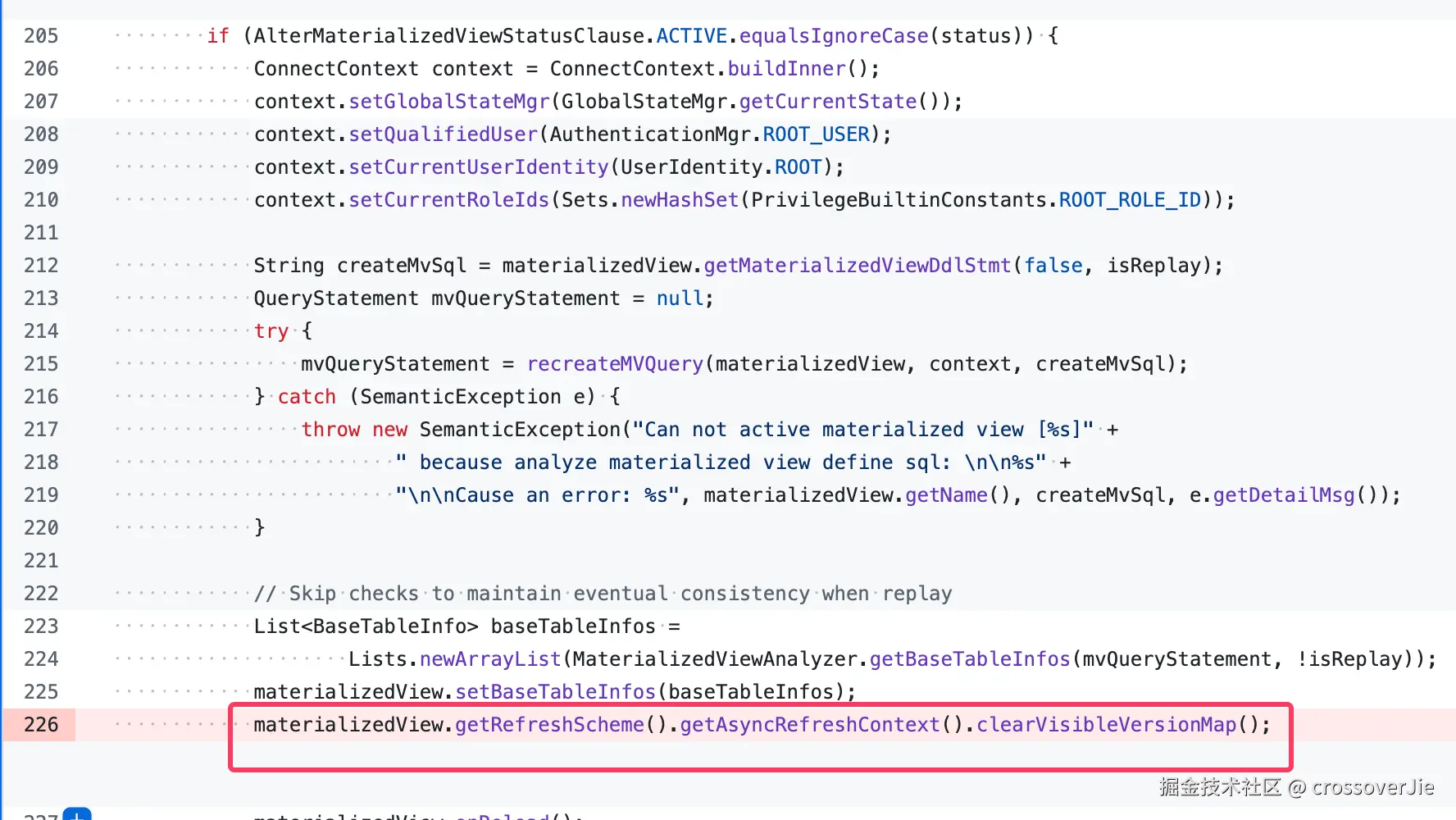 我们在手动 ACTIVE 之后发现这些物化视图又在做全量刷新了,于是我们检查了代码。