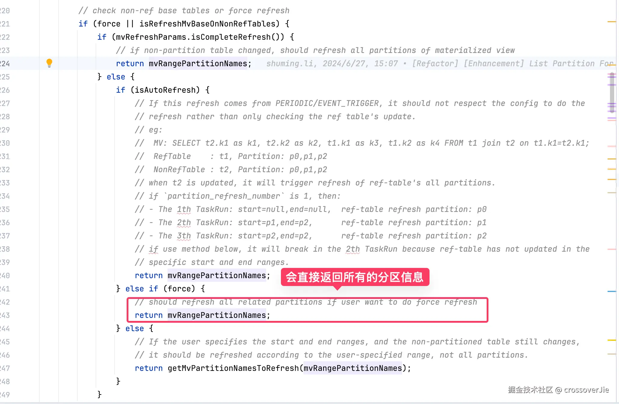 force: true 的时候会直接跳过基表的分区检查,导致分区的全量刷新。