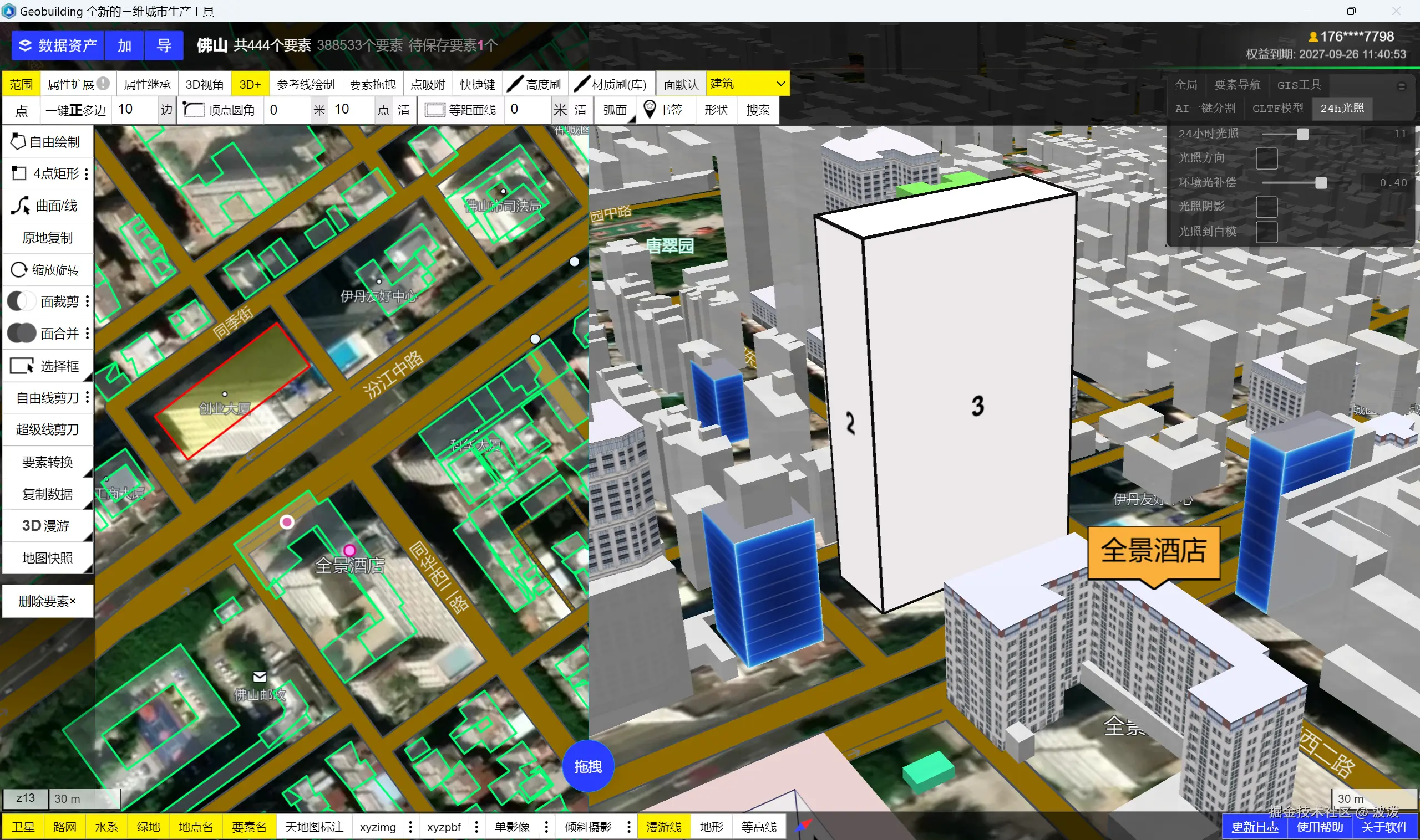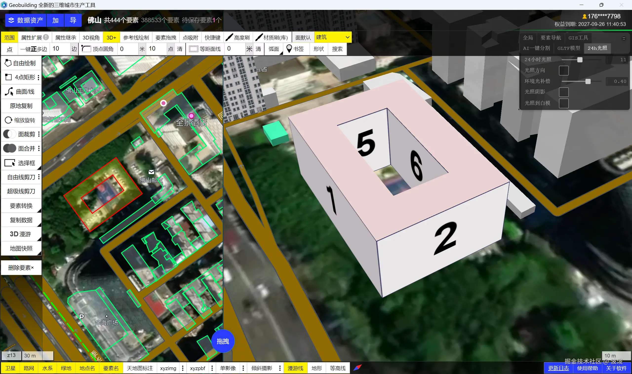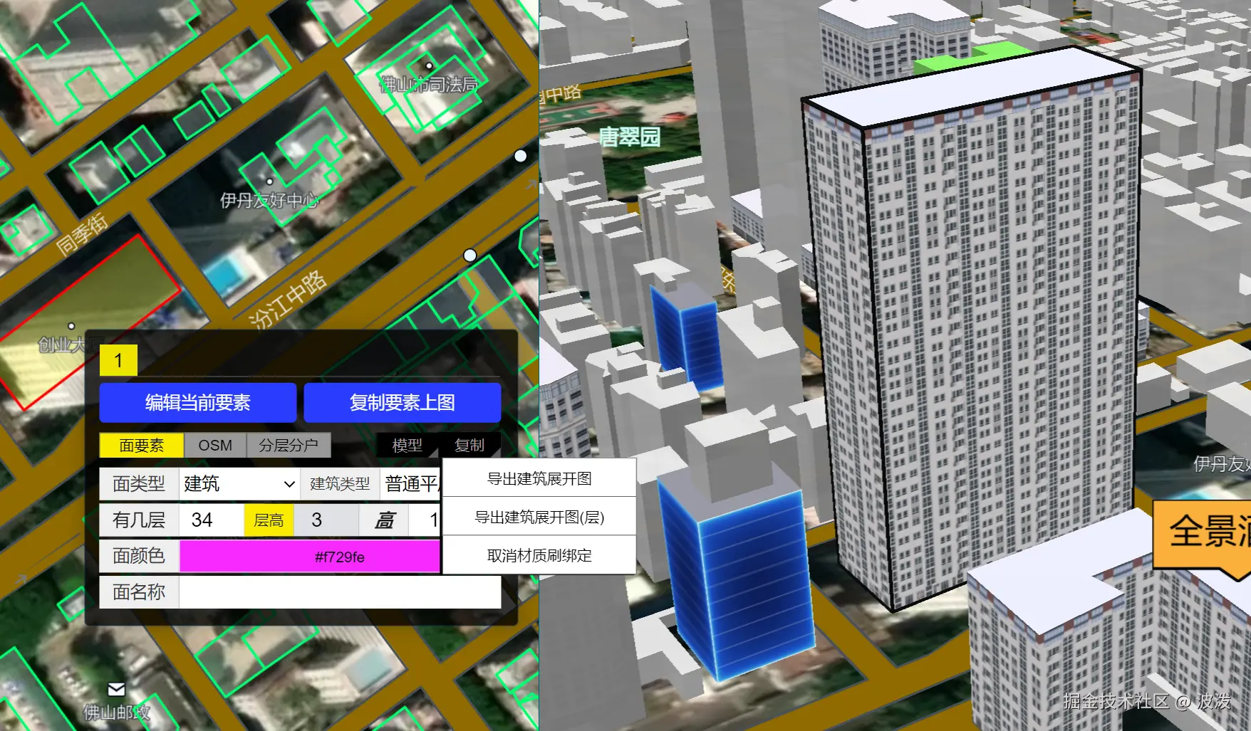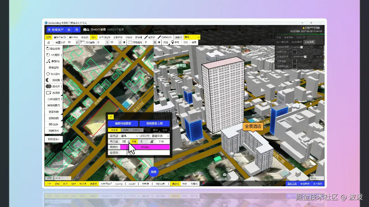 现在,在Geobuilding软件中,你可以通过设置GIS属性,实时更新模型,所见即所得。非常简单的操作交互。