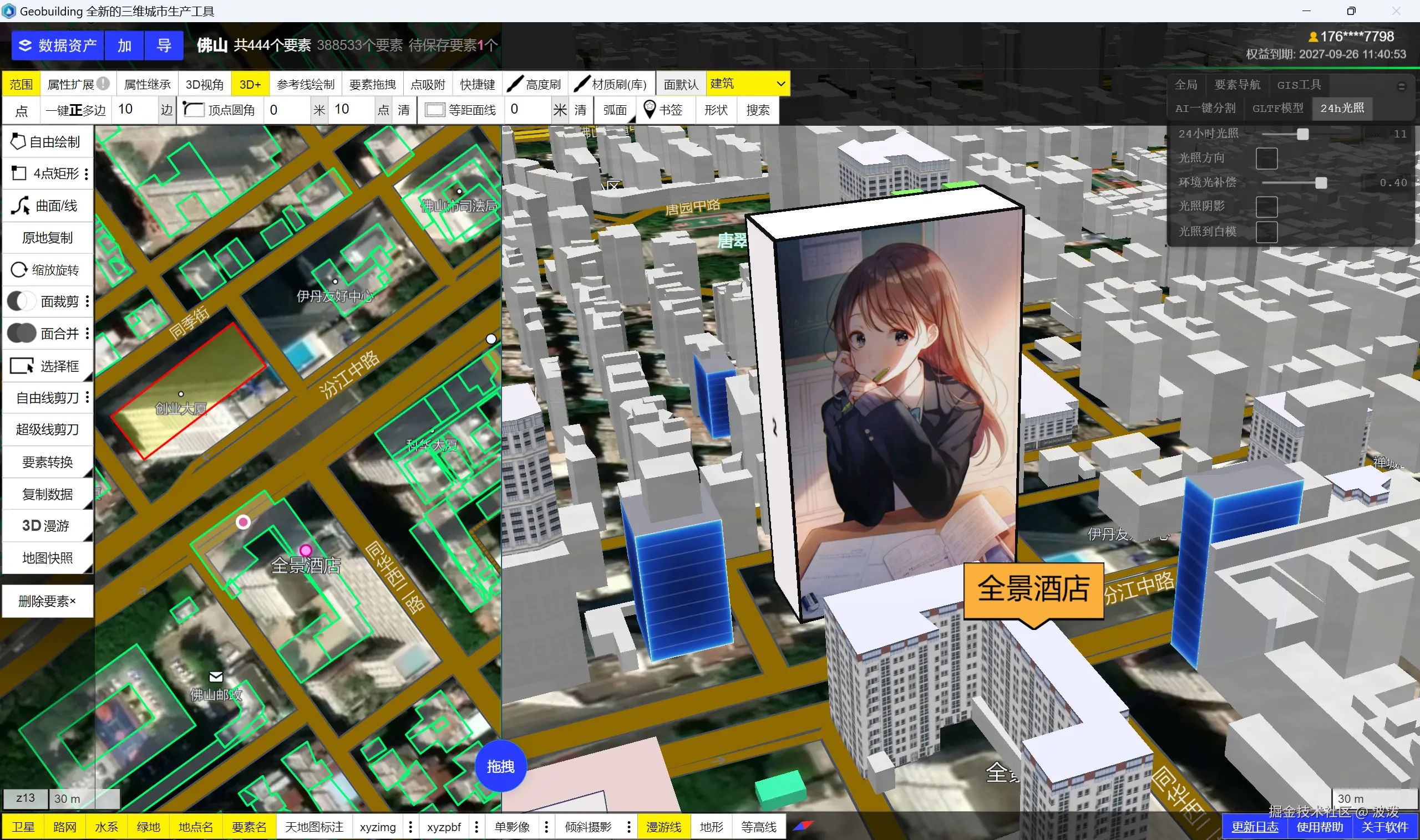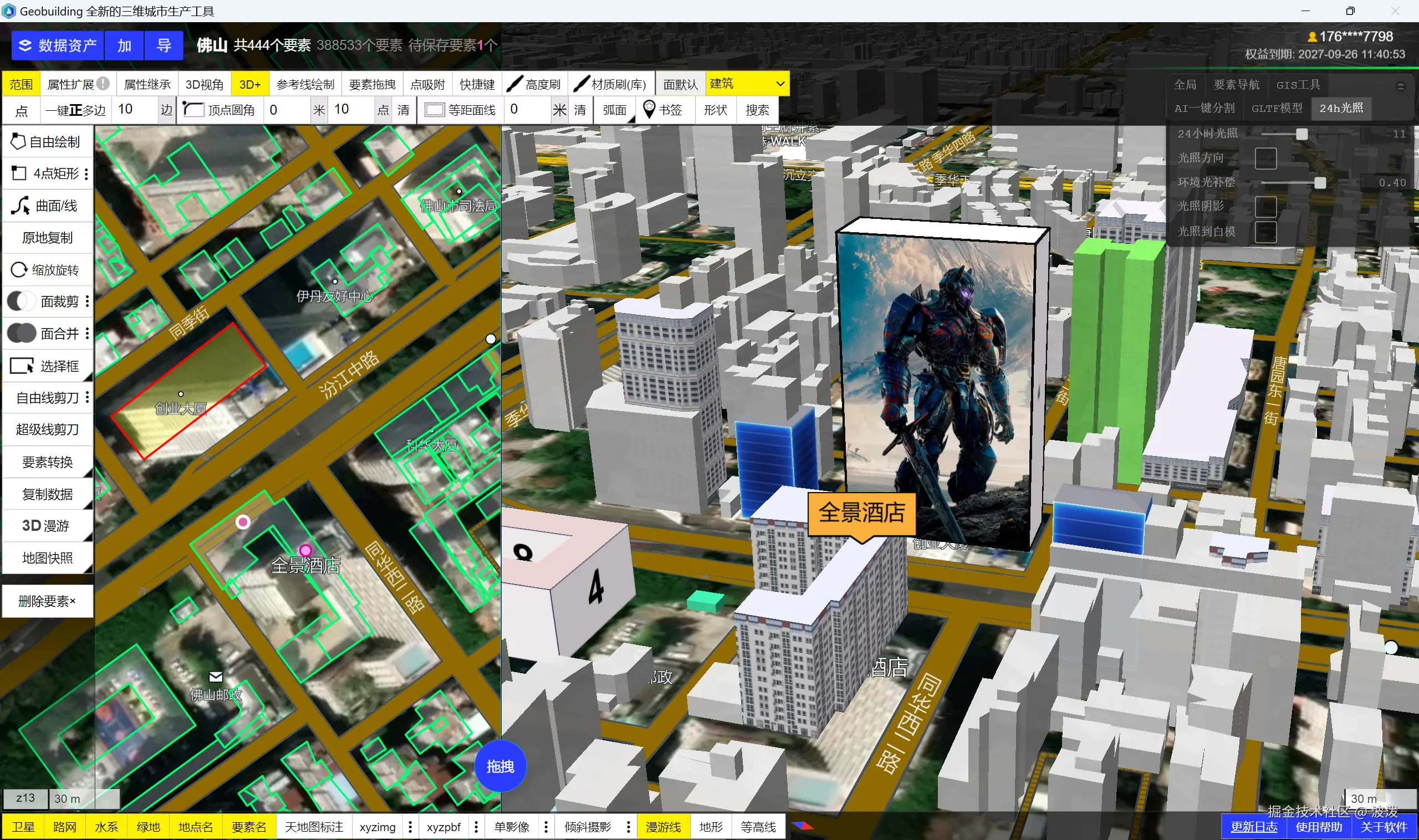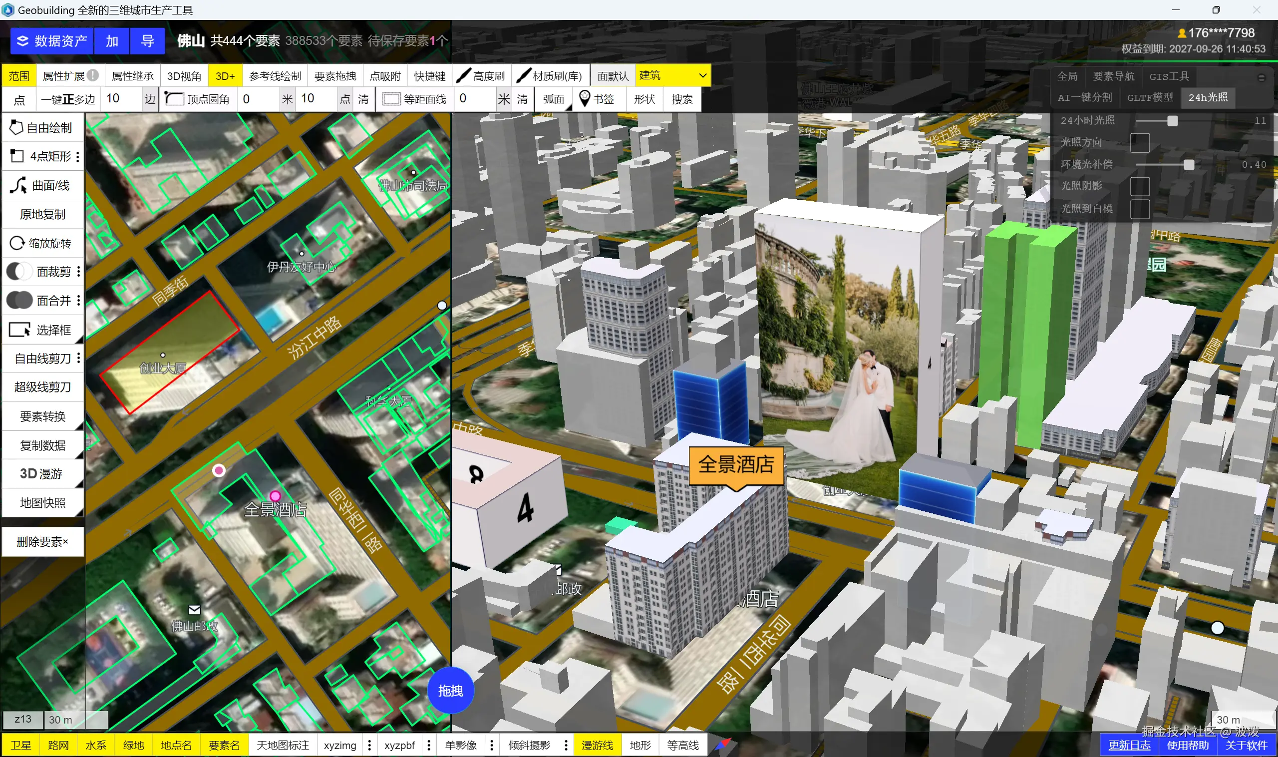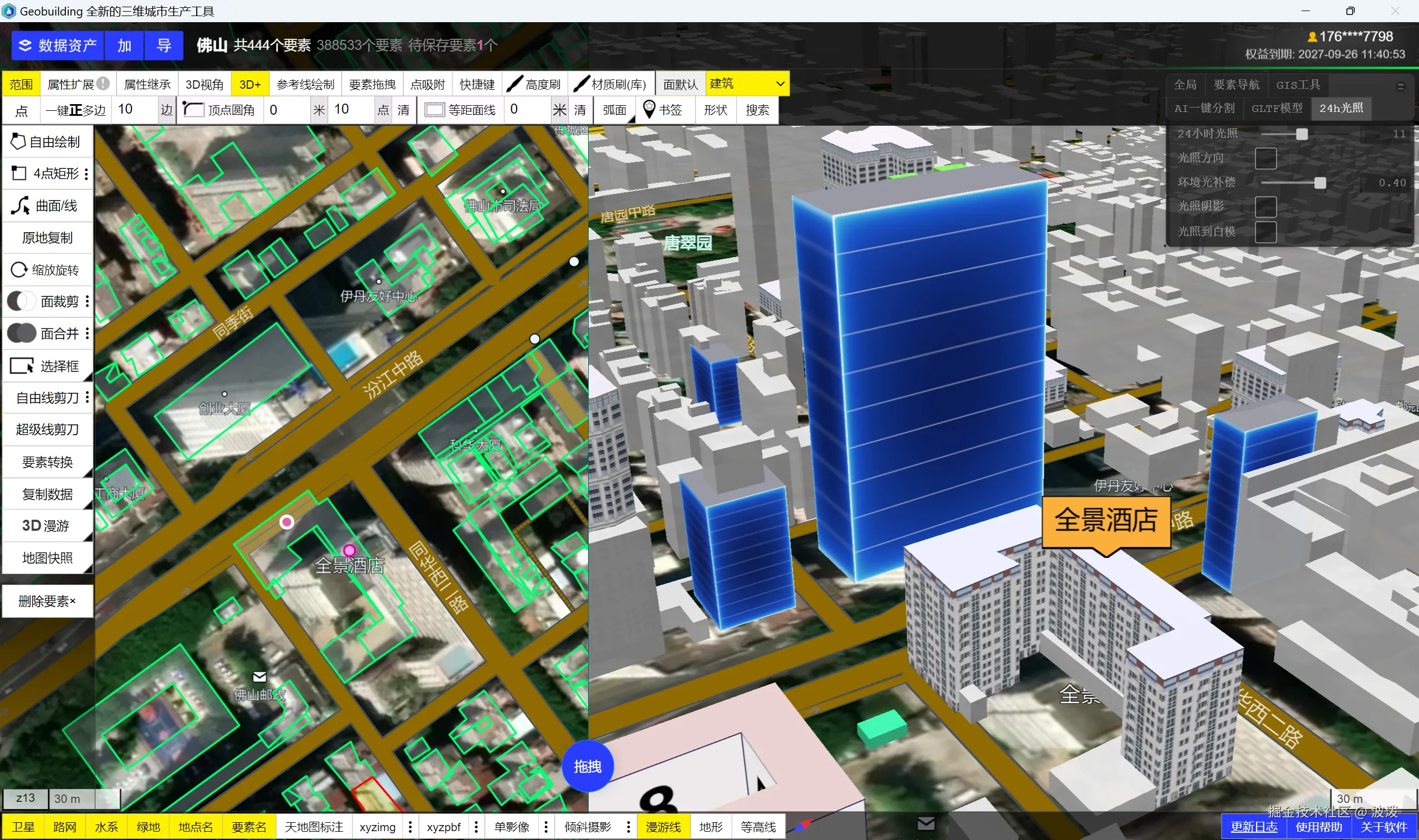 现在,在Geobuilding软件中,你可以通过设置GIS属性,实时更新模型,所见即所得。非常简单的操作交互。