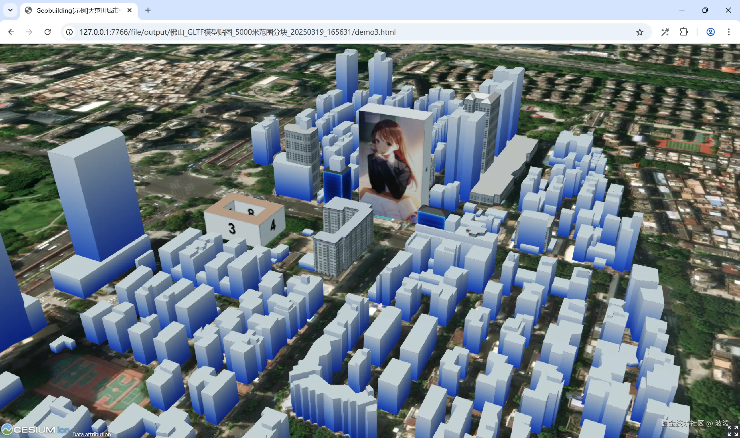 如果导出的格式是gltf,软件会导出基于cesium的演示文件和地址,可直接在浏览器中打开浏览效果。