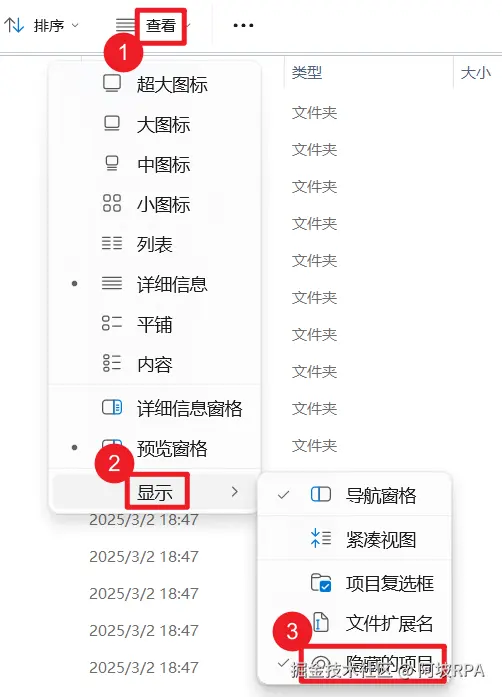 如果看不到该文件,请将资源管理器查看设置改为显示隐藏的项目:查看-》下你是-》勾选 隐藏的项目