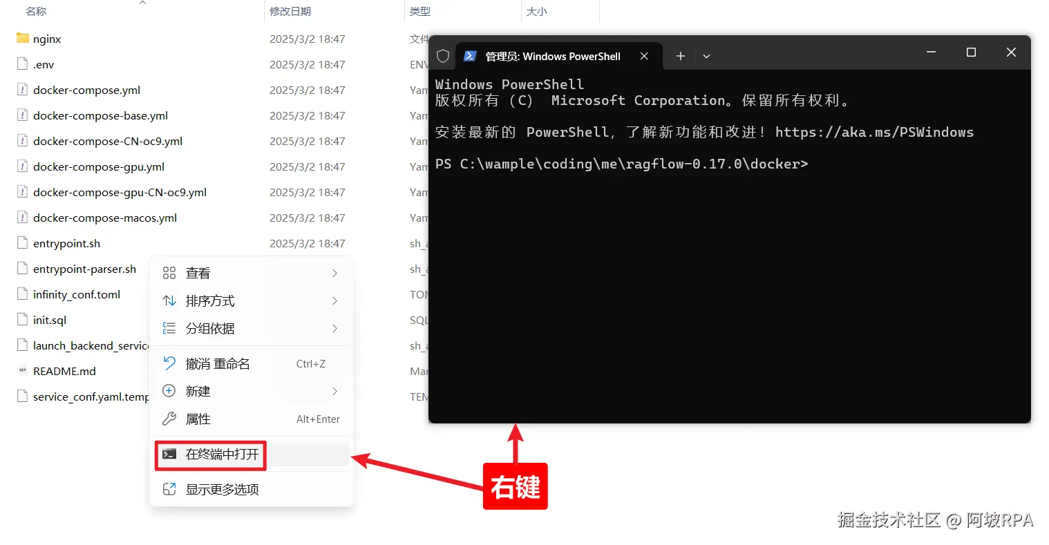 进入docker目录,右键打开命令行: