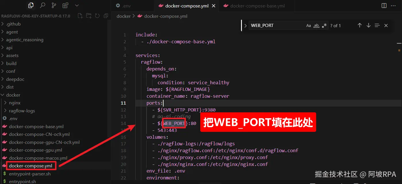 修改文件位置:docker目录下的env文件
