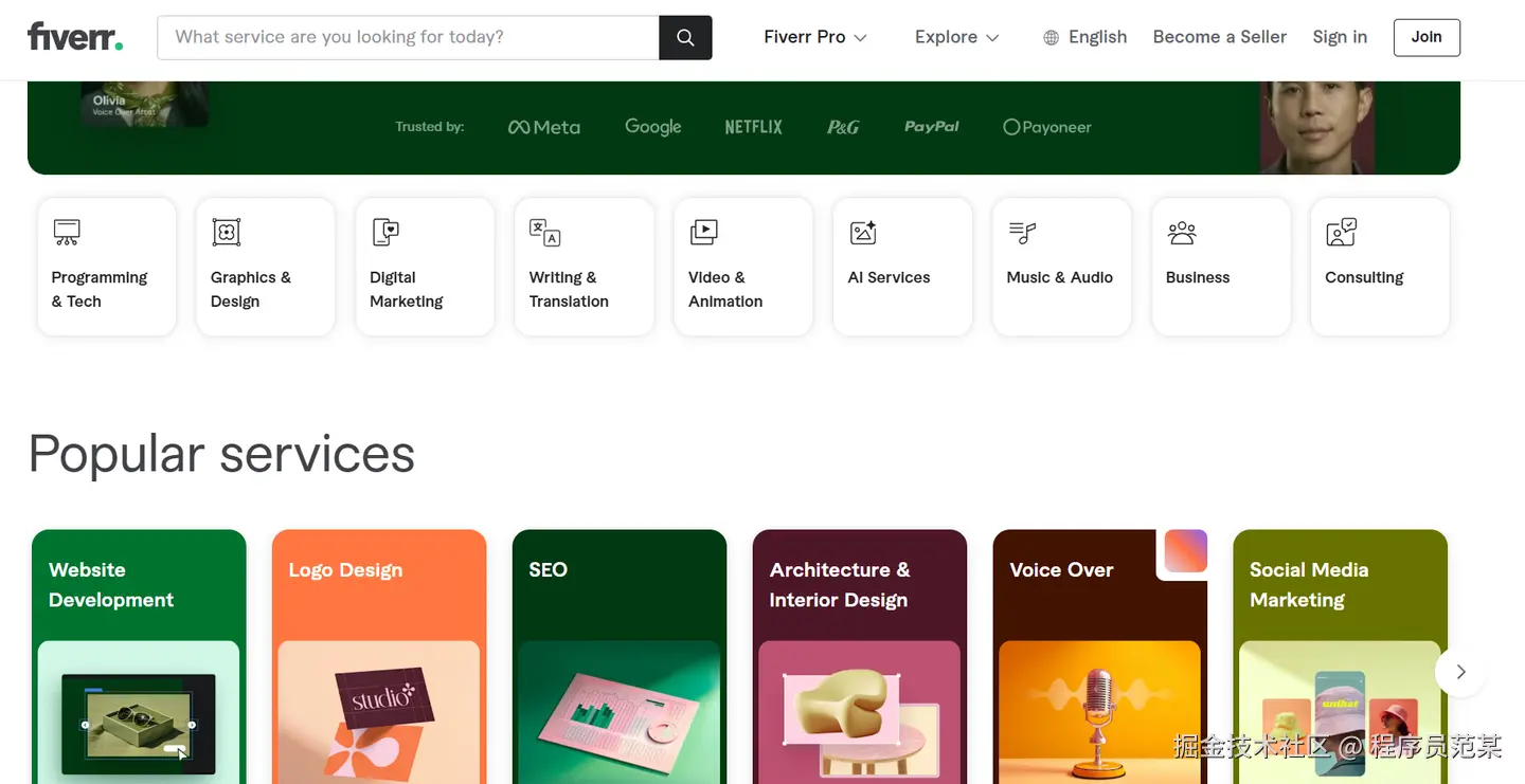 也是全球知名的自由职业平台,以¥5起的小任务为主,适合标准化服、碎片化需求。