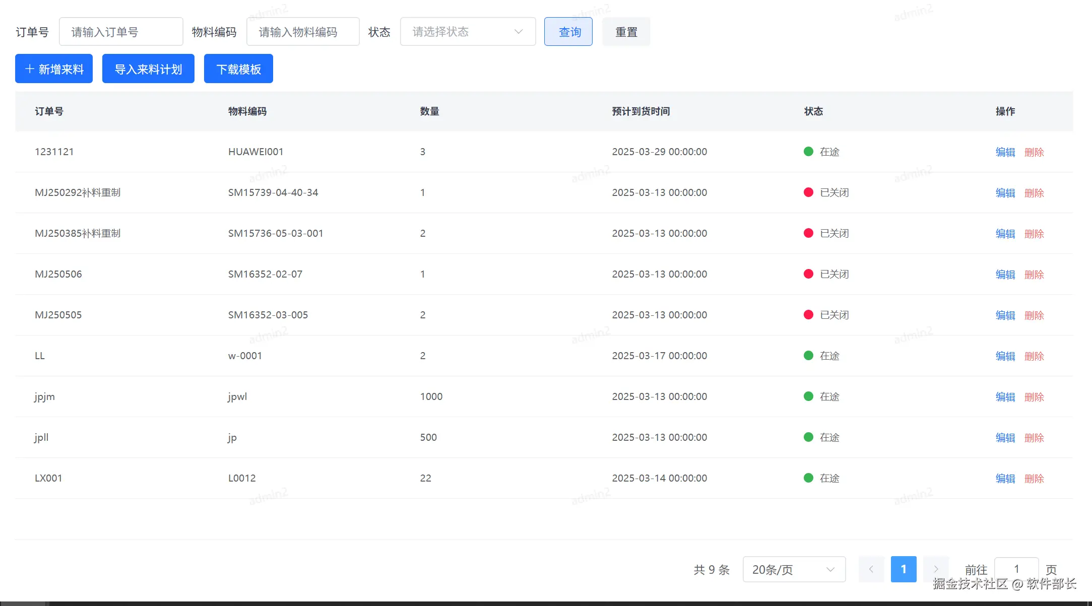 1.物料管理