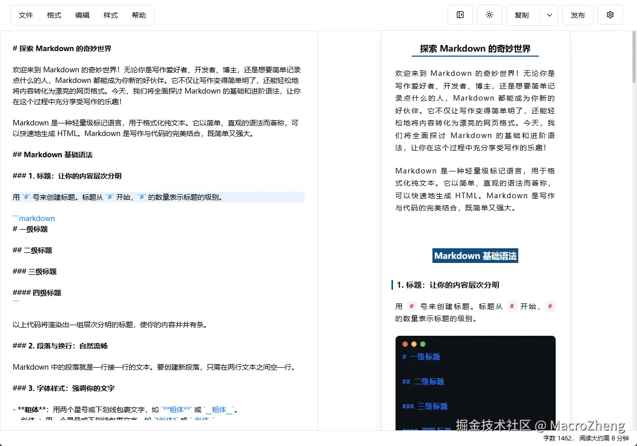 - 除了主题的切换,还支持主题色的切换,通过主题和主题色的叠加,md支持非常丰富的样式显示;