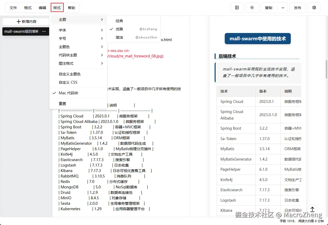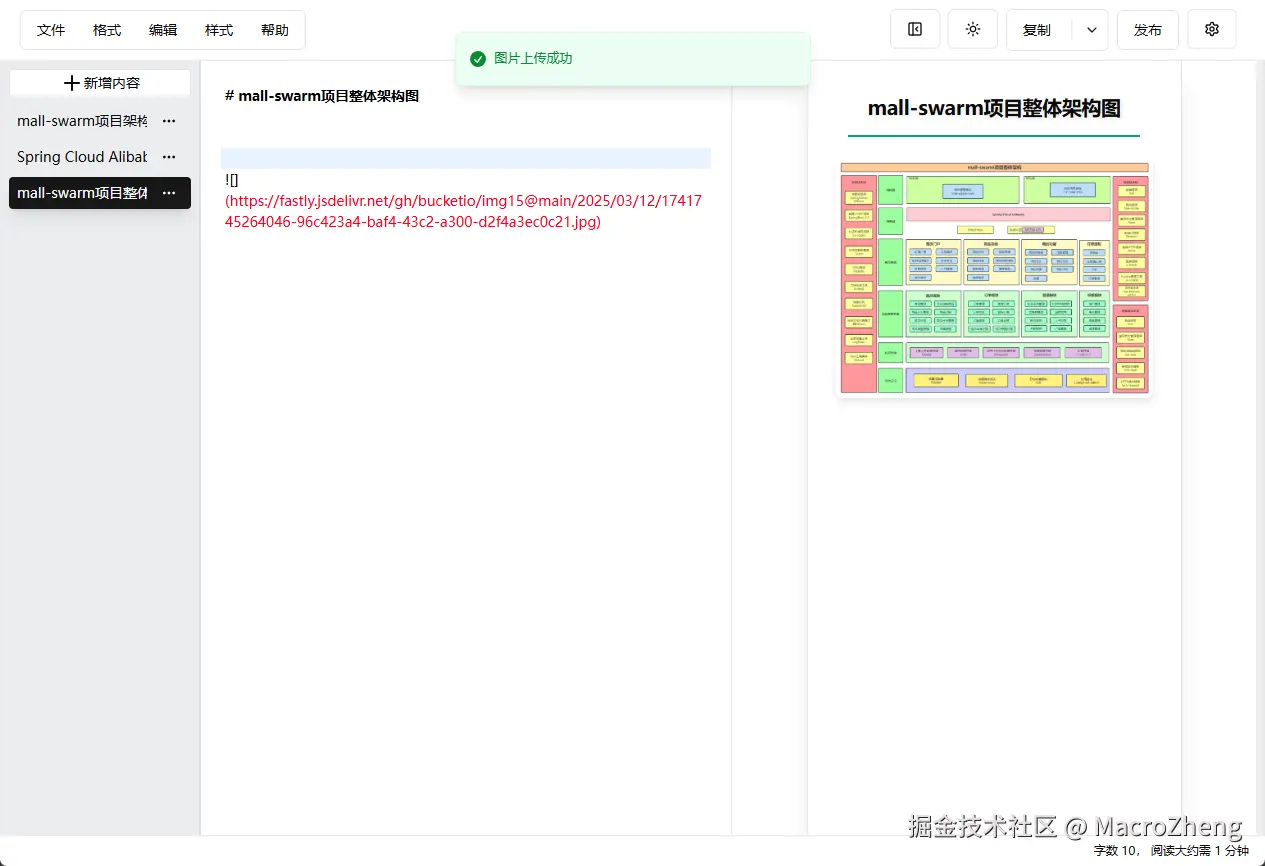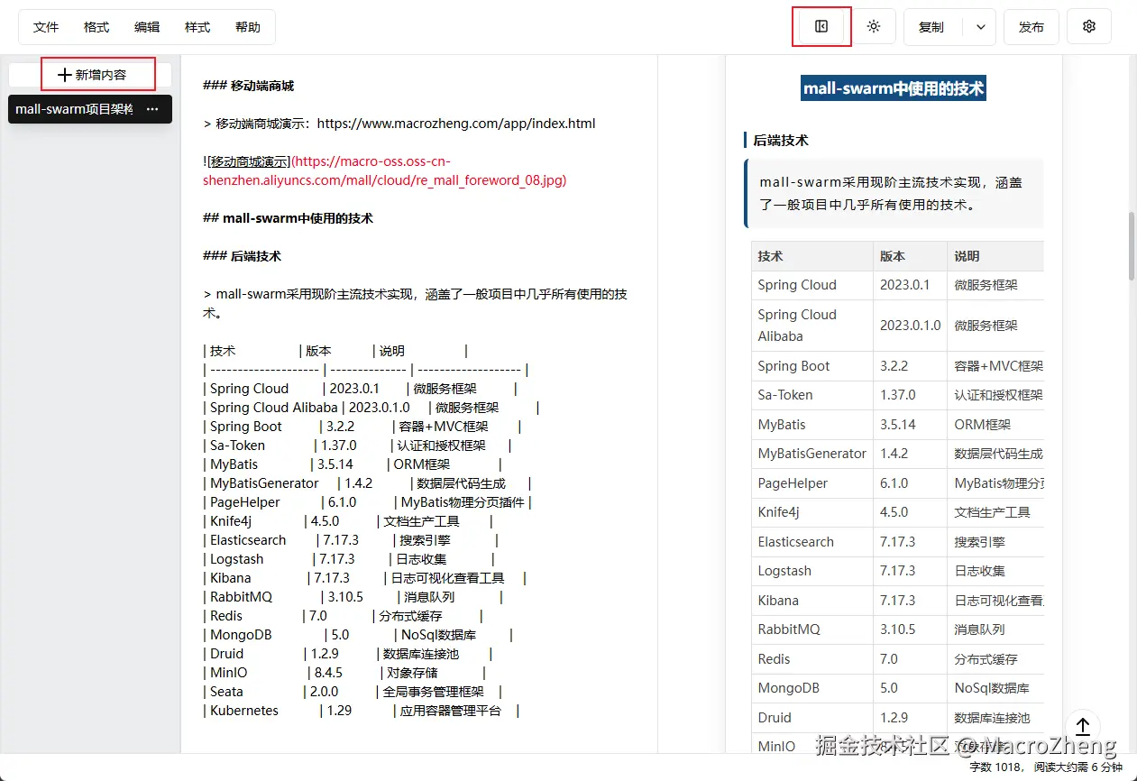 本文将以《mall-swarm微服务学习教程》中的部分文档为例,来演示下md的使用。