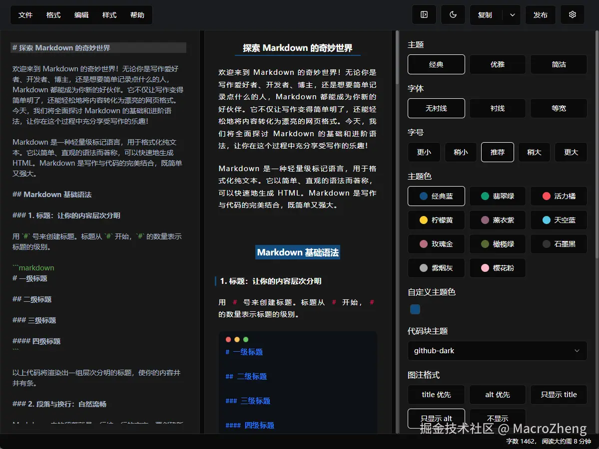 - md支持浅色和深色主题,界面还是非常炫酷的!
