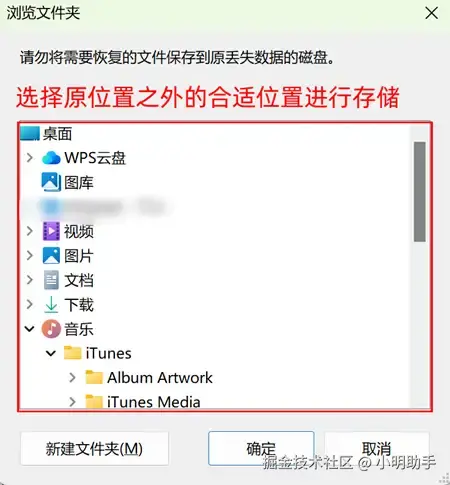 步骤3:在弹窗中选择恢复文件的存放位置,点击【确定】。