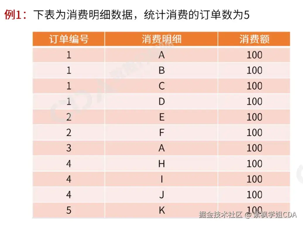 - 非重复计数:去重后的计数,例如统计不同产品的订单数。