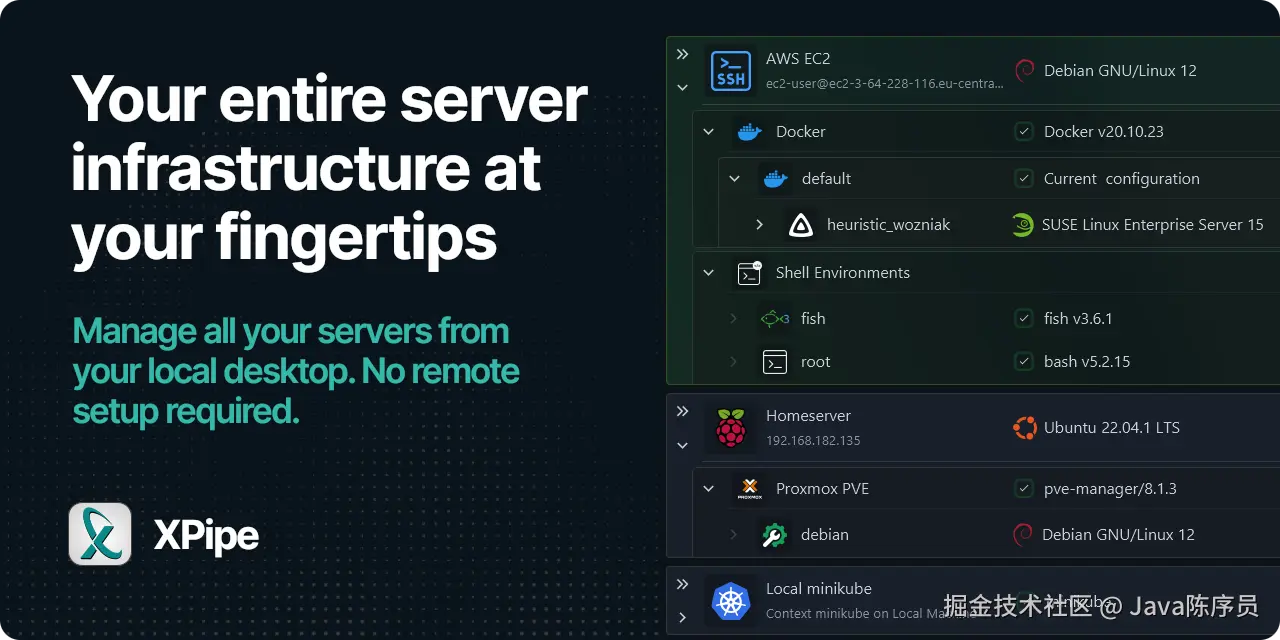 xpipe —— 一款免费开源的跨平台 SSH 客户端软件,支持 Windows、MacOS 和 Linux 等主流操作系统。