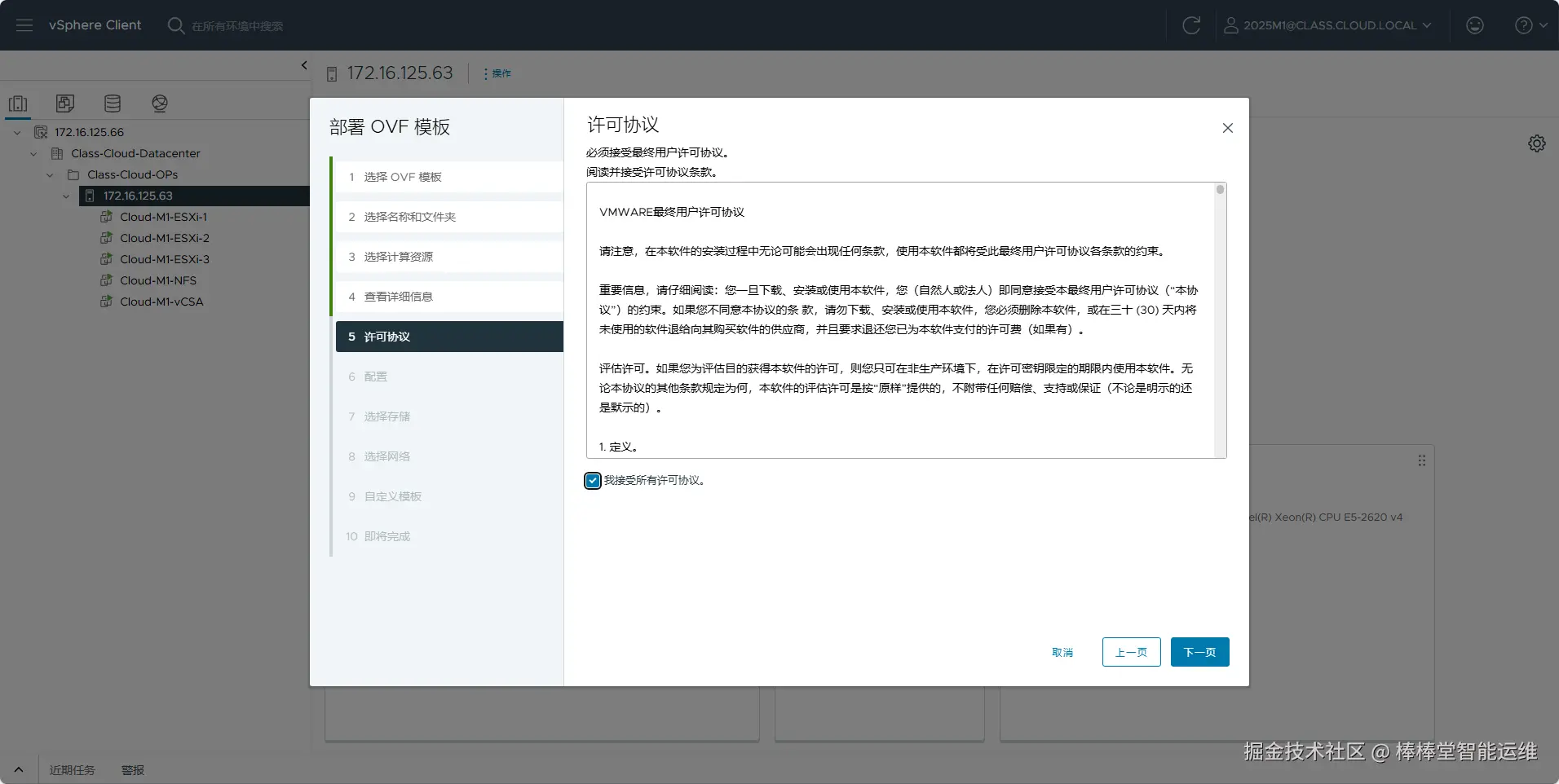 (5)在向导的“3 选择计算资源”中选择ESXi主机“172.16.125.63”,单击【NEXT】,如图5-3所示。