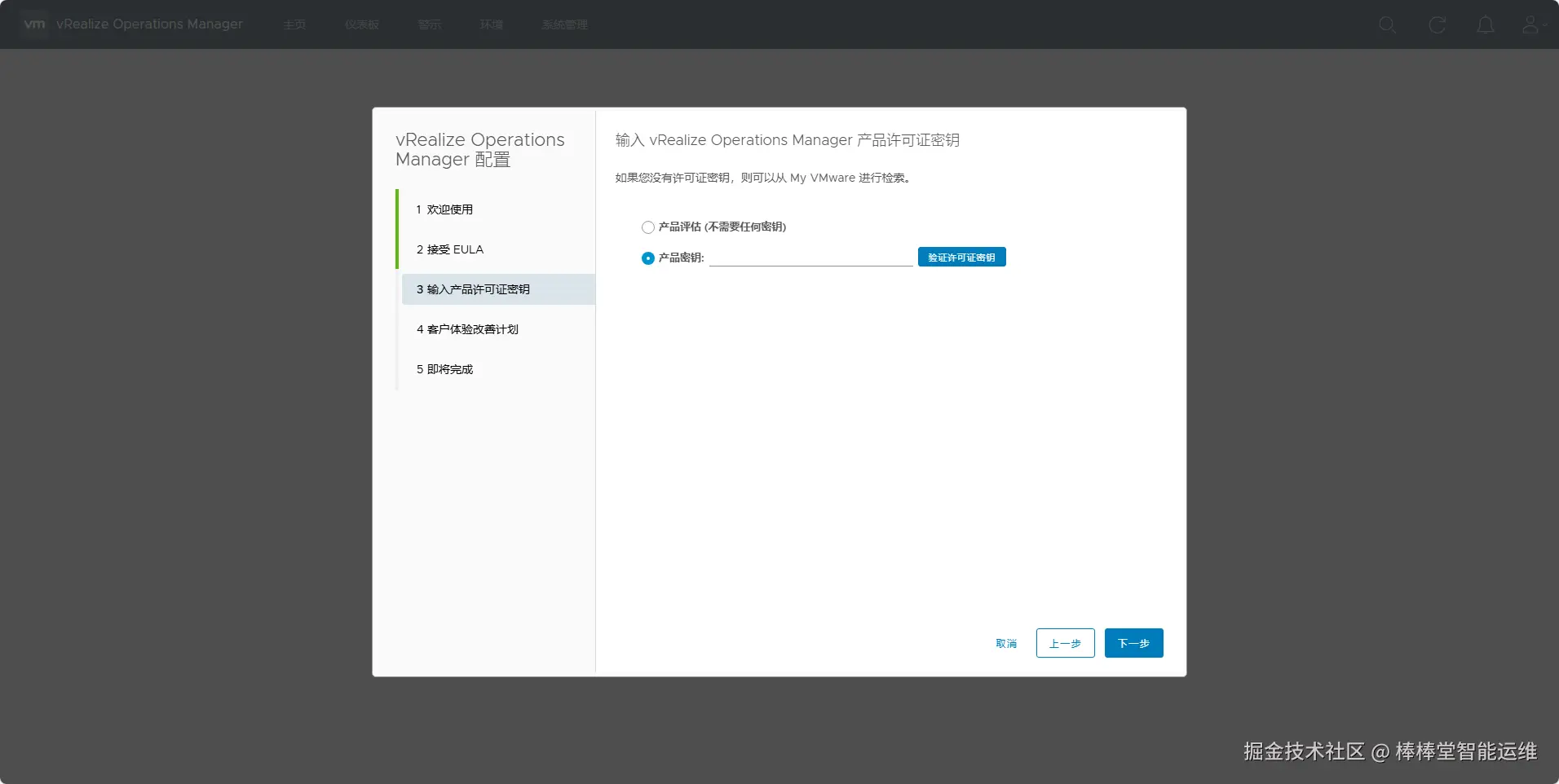 (7)在向导“3 输入产品许可证密钥”中勾选“产品密钥”,单击【验证许可证密钥】,如图5-17所示。
