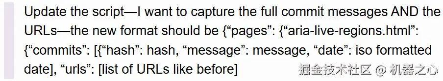 我也知道这会起作用。我花了足够多的时间使用这些工具,我相信使用从我的 Git 历史记录中提取的信息组装一个新的 HTML 页面完全在优秀 LLM 的能力范围内。