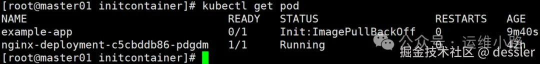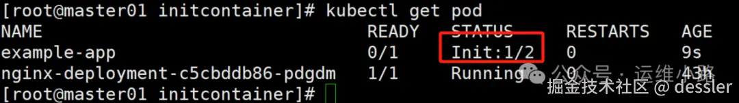 3.当前面2个容器都正常执行退出以后,真实的业务容器才会启动,然后执行对应的逻辑,然后查询pod是感觉不知道那个init容器的。