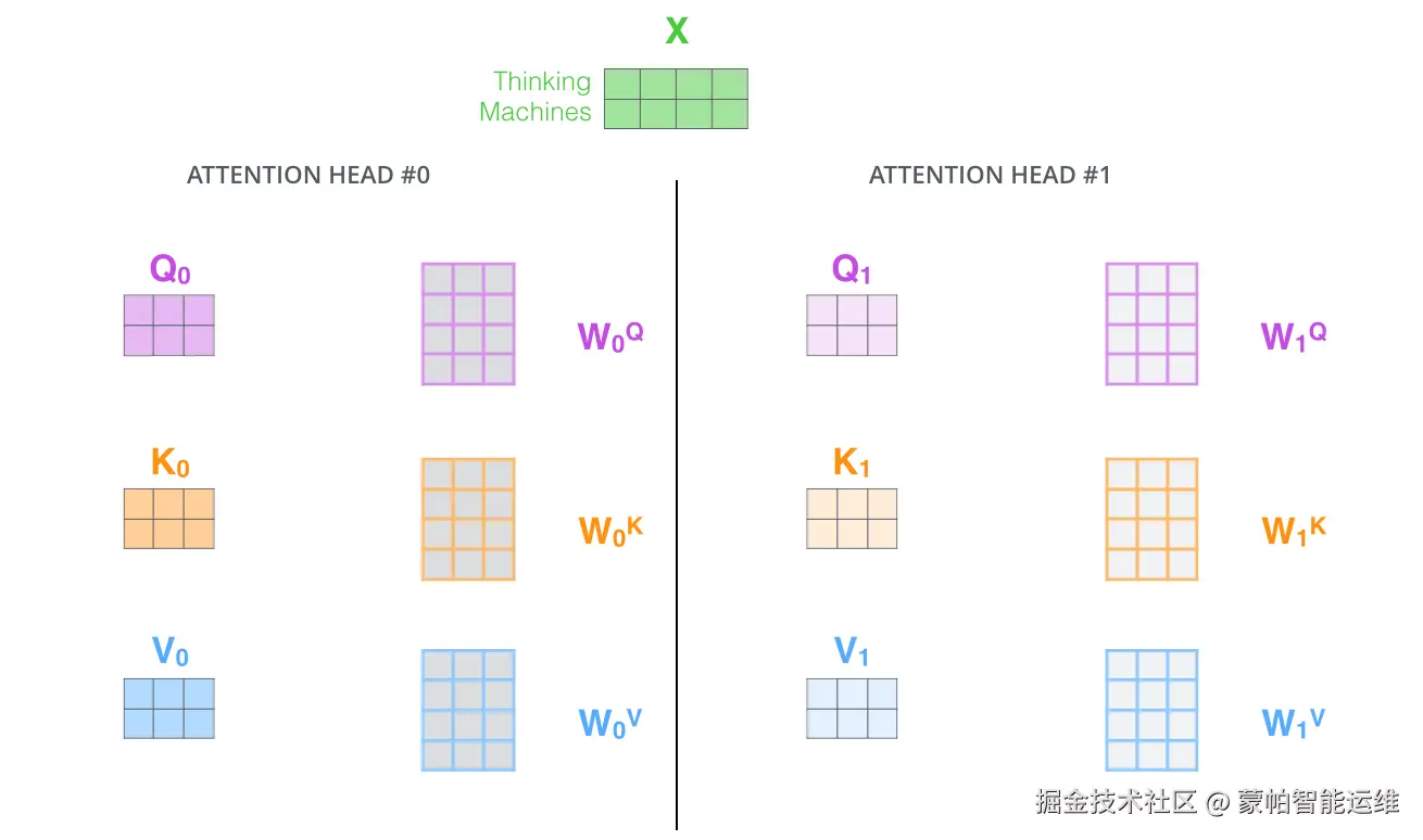 图8. 多头注意力机制矩阵计算演示