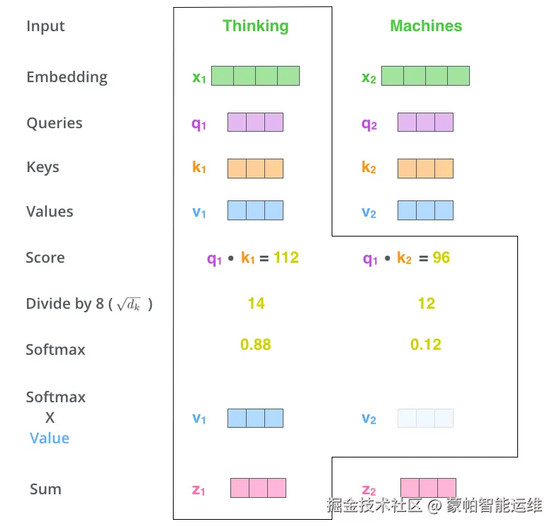 图5. Self-Attention计算示例图