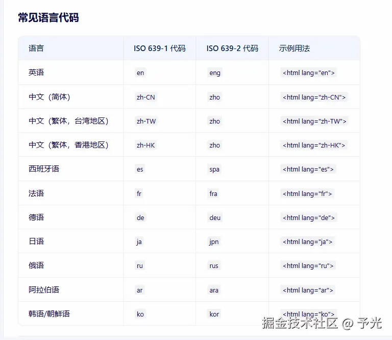 前端页面常见的语言代码