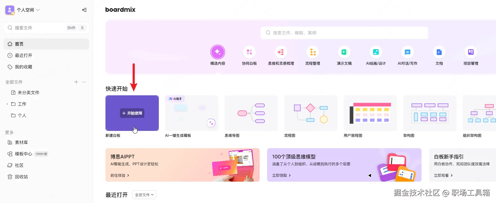 点击下方的“新建白板”,创建一个boardmix白板。