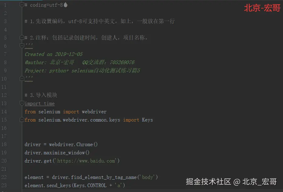 # 1.先设置编码,utf-8可支持中英文,如上,一般放在第一行