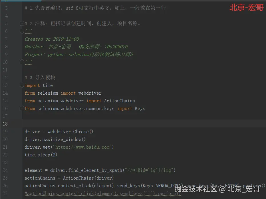 本文介绍如何使用Selenium中右键方法来操作网页元素。网页上有些元素是支持右键来触发新的菜单,这里找一个百度首页,百度logo的右键,查看图片动作来模拟这个场景。